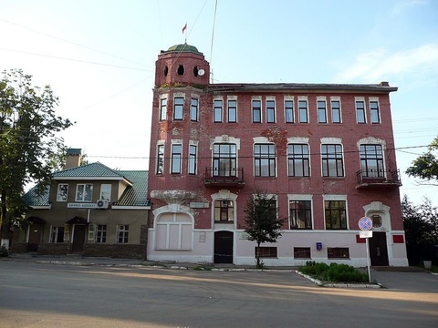 Постройка представляет собой четырехэтажное здание красного цвета с двумя балкончиками и надстройкой над западной частью. Сейчас в этом здании располагается районная администрация.