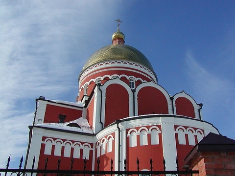 Храм трехпрестольный. Главный престол посвящен Святой Живоначальной Троице. Северный придел посвящен иконе Божией Матери "Знамение", южный - Святому благоверному князю Александру Невскому.