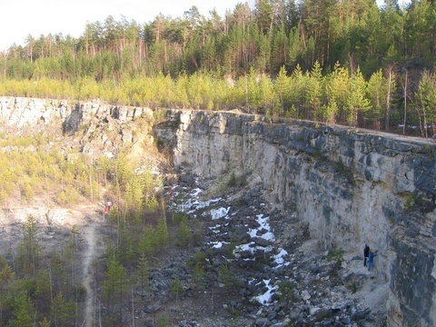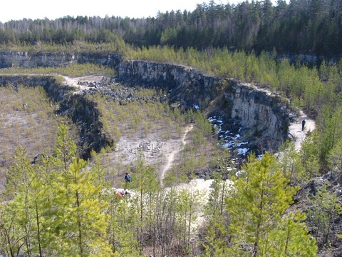 Дюкинские карьеры это старые известняковые карьеры. Красивые и впечатляющие виды с отвесными стенами поросшими маленькими сосенками. Очень необычно для равнины.