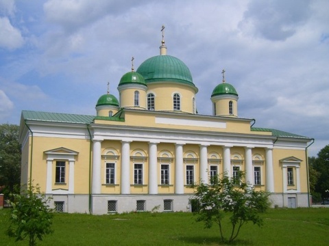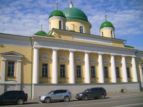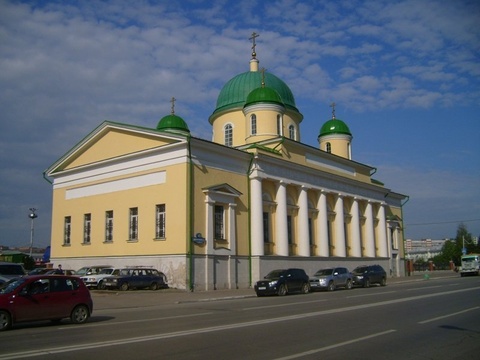 Красивая церковь в стиле русского классицизма. Пятиглавый храм с дорическими колоннами вдоль лицевого фасада. Был построен в начале 19 века по проекту В.Ф.Федосеева. Ранее входил в состав Успенского монастыря вместе с соседним Успенским собором. С 1921 год монастырь упразднен.
