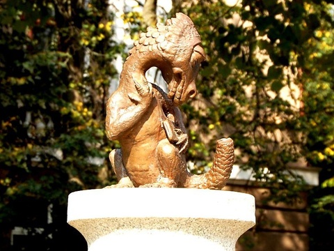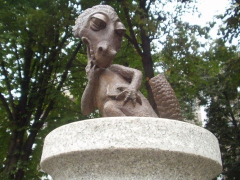 За время существования памятника (с 2007 года) было придумано множество примет. Если хочешь сдать удачно экзамен, надо подержаться за хвост ящерки или погладить ее, можно потереть зачетку об ящерку или просто кинуть ей монету. Молодожены тоже не отстают и придумали свои приметы - если жених почешет ящерке животик, то жена у него будет доброй, а если невеста погладит ящерке голову, то муж будет умный. :)