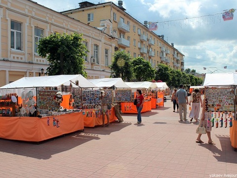 Тверской “Арбат”. Пешеходная зона с сувенирами, магазинами, кафе и ресторанами в историческом центре города.