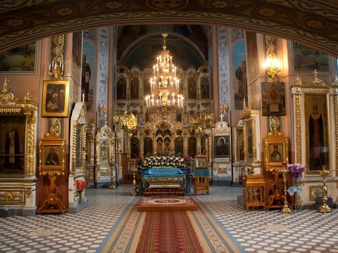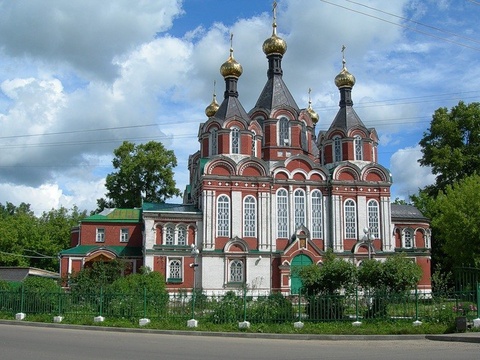 Яркий, красивый храм, который нельзя не заметить. Построен в память выздоровления царя Николая II в 1900 году. Пять высоких шатровых башенок с луковичными золотыми главками. Строился в период с 1902 по 1911 года по проекту архитектора Федора Рыбинского. В советское время в соборе был клуб кустарей, затем склад зерна.