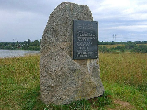 При подъезде к даче стоит памятный камень в память о художниках, работающих на удомской земле.