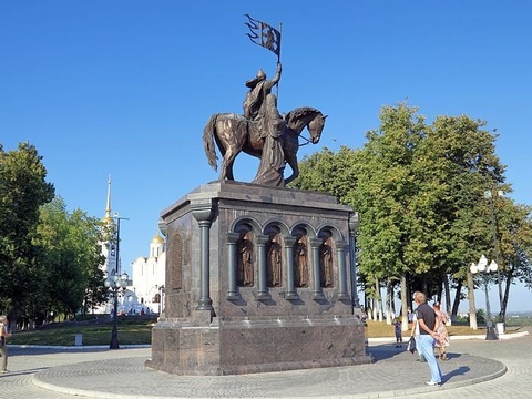 На площадке стоит памятник основателю города, князю Владимиру Красное Солнышко рядом с ним святитель Федор. Памятник установили в 2007 году в честь 850-летия переноса столицы Древней Руси из Киева во Владимир.