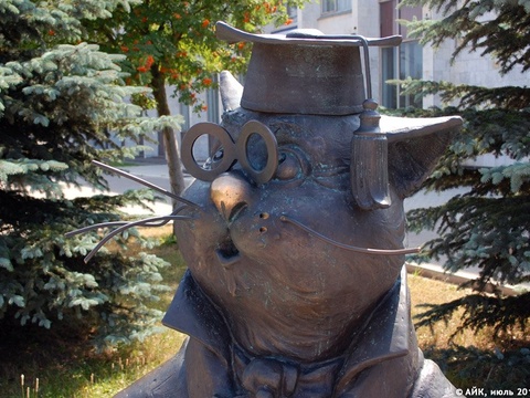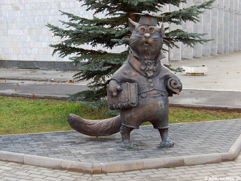 Обнинск - наукоград, поэтому ученый кот здесь очень кстати. С книжкой и в очках, очень симпатичный бронзовый кот стоит у обнинского Дома ученых.