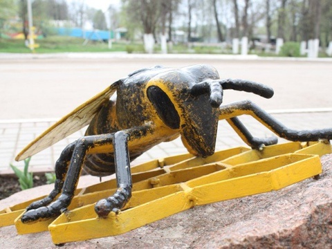 Пчела - символ города Медынь. Поэтому недалеко от входа в здание районной администрации расположен памятник с пчелой.