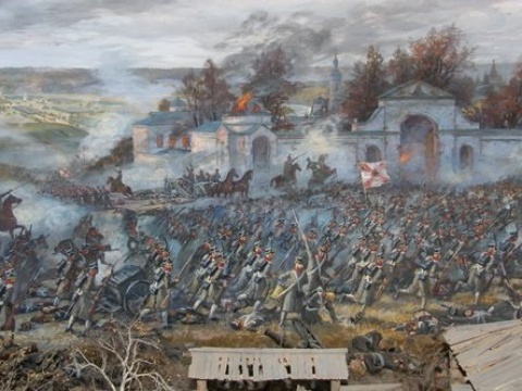 Визуализация значимой битвы, произошедшей под Малоярославцем в ходе Отечественной войны 1812 года. Филиал Музея 1812 года.