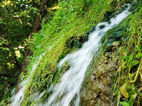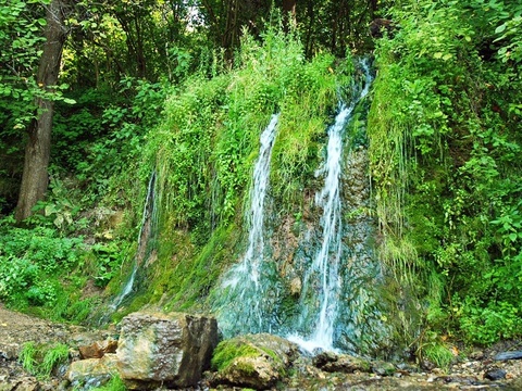 Водопад высотой в несколько метров (около 3-х). Живописно располагается в лесу. Весь склон водопада покрыт густым зеленым мхом - очень красиво.