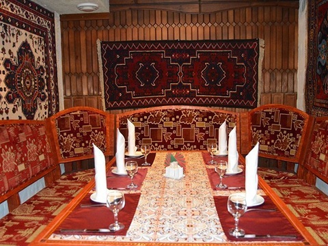 На первом этаже комплекса расположены 2 ресторана. Первый с восточной кухней, второй с русской и европейской.