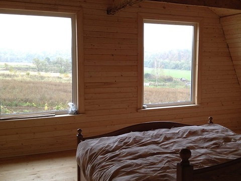 На территории фермы есть три гостевых деревянных дома. Два дома вмещают по 6 человек, один - 4. В каждом доме есть туалет, душ, на первом этаже пол с подогревом. Завтрак включен в стоимость проживания.