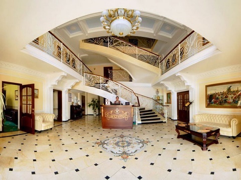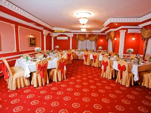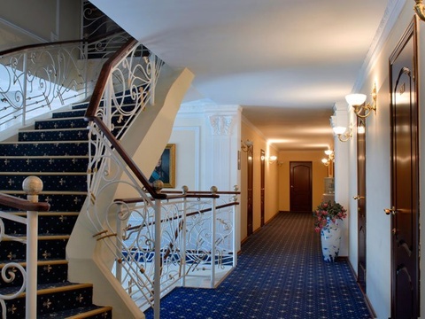 На первом этаже отеля располагается 2 зала ресторана (Бордовый и Лазурный). На втором этаже - портретная галерея, где запечатлены все члены династии Романовых.