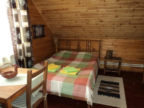 На втором этаже дома: холл, санузел, четыре двухместные комнаты, оформленные в стиле четырех времен года. Во всех комнатах - деревянная мебель, окрашенная экологичной краской на водной основе. В каждой из комнат - две односпальные либо одна двуспальная кровати, тумбочки, настольные или настенные лампы, комод, стол, стулья, шкаф для одежды. На первом этаже дома: большая гостиная, кухня-столовая, санузел.