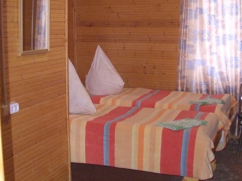 База предлагает коттеджи с 4-7 номерами. В номерах: душ, горячая, холодная вода, туалет, телевизор, холодильник. 1-ый этаж каждого коттеджа оснащен каминным залом и баром.