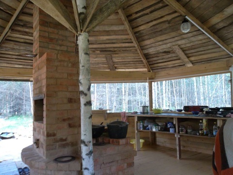На территории базы имеется место для приготовления шашлыков с беседкой, коптильня, терраса с летней кухней для заготовки грибов и ягод, мостик для загара, мостик для рыбалки, детская площадка, место для купанья, русская баня.