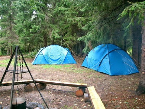 Деревянные коттеджи в уединенном, тихом месте. Палаточный городок.