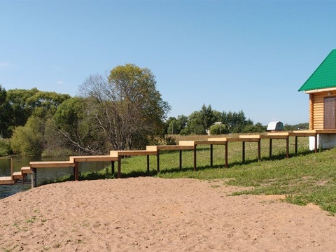 Отдых на природе рядом с лесом и прудом. Можно снять небольшие и недорогие домики, можно снять домики побольше на 6-10 человек, можно снять палатку или приехать со своей. Все дома деревянные, со всеми удобствами.
