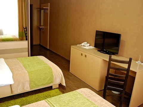 Отель находится в 10 минутах езды от центра города. Стоит в сосновом бору.
