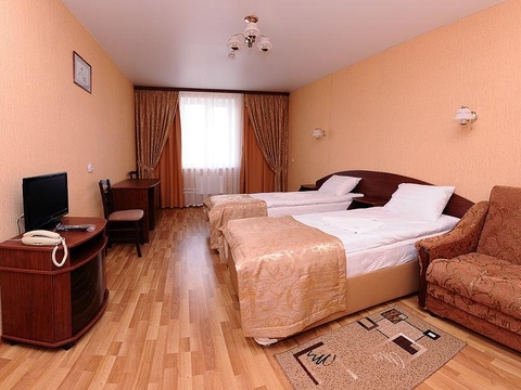 В гостинице два корпуса. Новый корпус представляет собой комфортабельный семиэтажный отель класса 3*. Номерной фонд включает в себя: 105 двухместных номеров первой категории, 4 номера люкс, апартаменты с кухней - 4 номера. Все номера оборудованы по европейским стандартам.