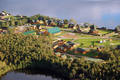 Комплекс деревянных срубов с огромной территорией на берегу озера . Красиво.